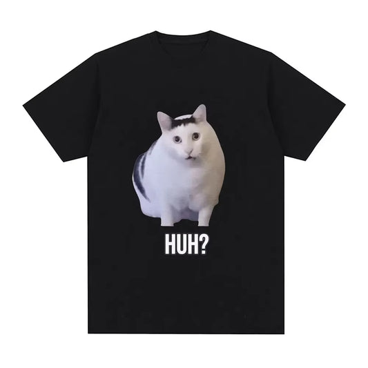 Cat Saying Huh? Funny Meme T-Shirt Men Women 100% Cotton Breathable Short Sleeve Oversized T Shirts Fashion Harajuku Tee Shirt